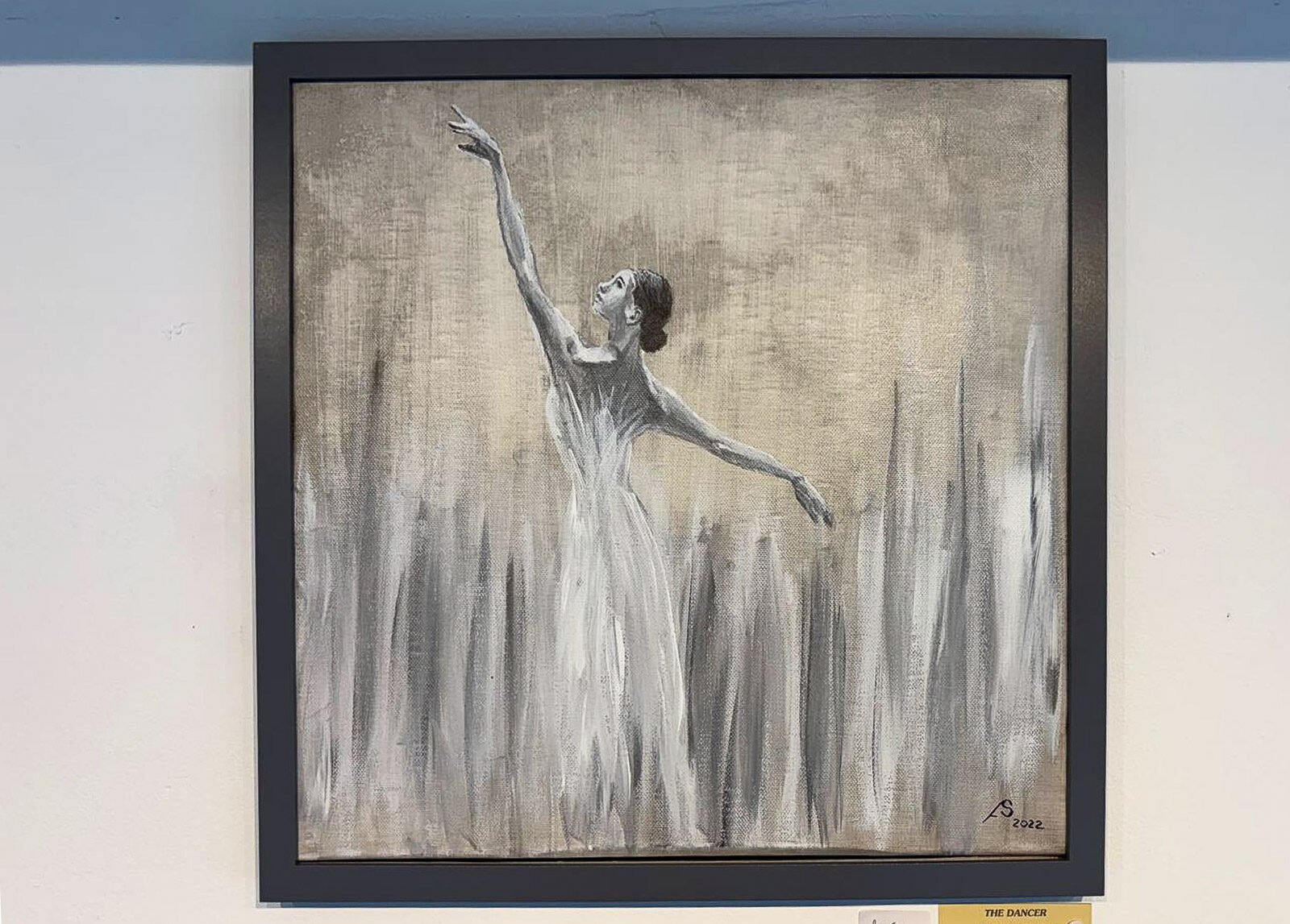 Graceful, ethereal, and full of movement — “The Dancer” is a poetic portrayal of a ballerina caught mid-motion, reaching skyward in a moment of expressive freedom. Rendered in soft monochrome tones, the painting blends realism and abstraction, allowing the emotion of the pose to speak louder than detail.